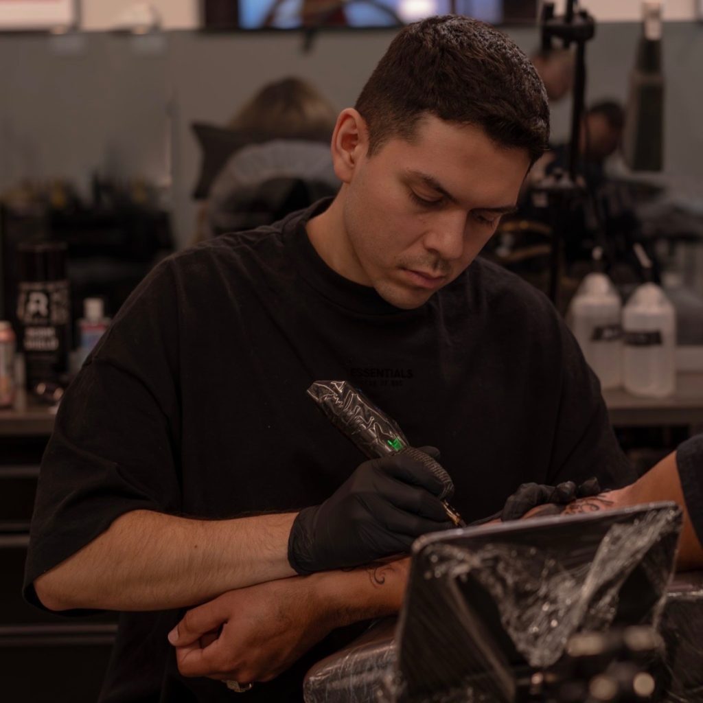 26 year old italiano tattoo artist located in Miami fl accepting all styles does realism, black and gray, color anime and lettering