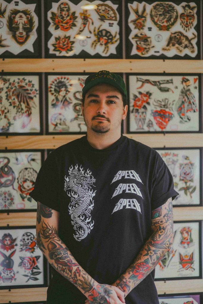 Ben “POWS” has been tattooing since 2005. He is proficient in many styles of tattooing, including, but not limited to: realism, lettering, graffiti, color, black & grey, abstract/psychedelic/surrealist, horror, pop culture, anime, decorative, geometric, blackout, black work, dot work/stippling, trash polka, large scale, brushstroke, avant guard, feminine, traditional, and many more.