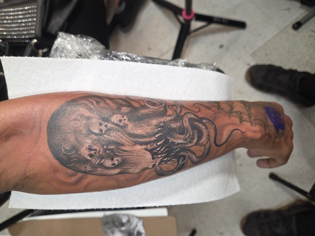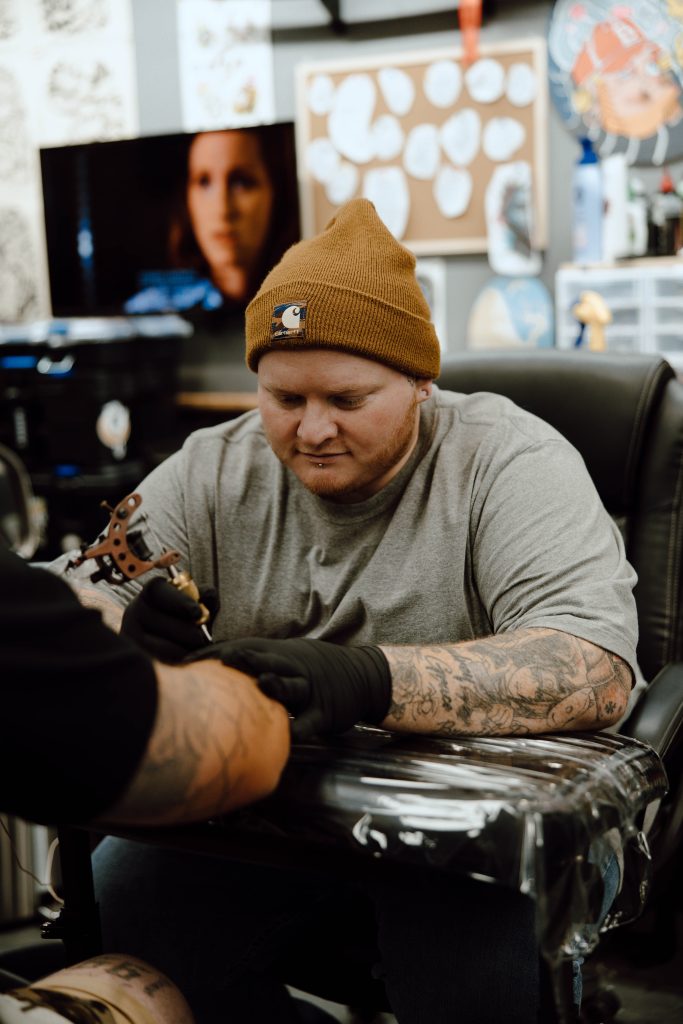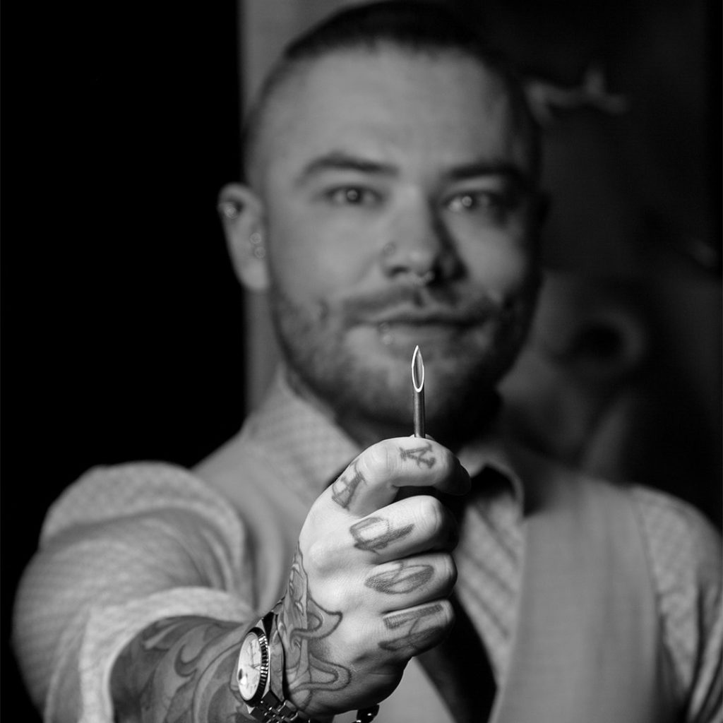 Ben “POWS” has been tattooing since 2005. He is proficient in many styles of tattooing, including, but not limited to: realism, lettering, graffiti, color, black & grey, abstract/psychedelic/surrealist, horror, pop culture, anime, decorative, geometric, blackout, black work, dot work/stippling, trash polka, large scale, brushstroke, avant guard, feminine, traditional, and many more.