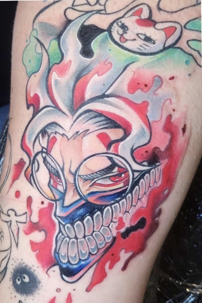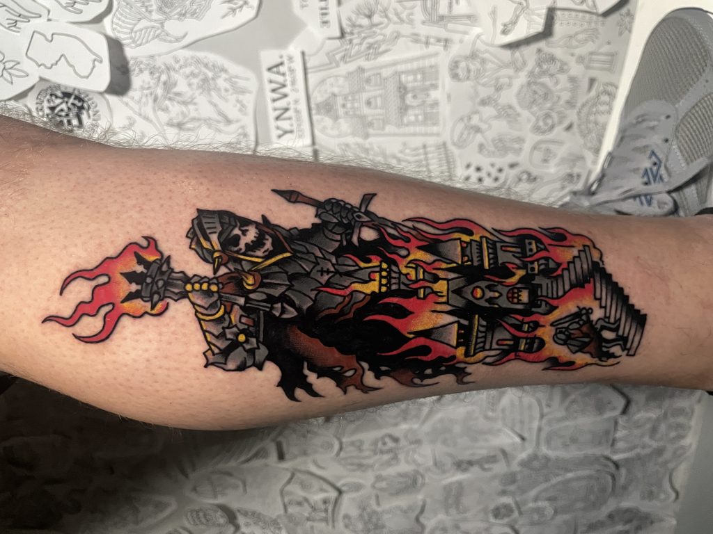 Hello! My name is Dylan, I’m a 28 year old tattooer who just got into my third year of tattooing, I specialize and love mixing American traditional with cartoon designs from my childhood.