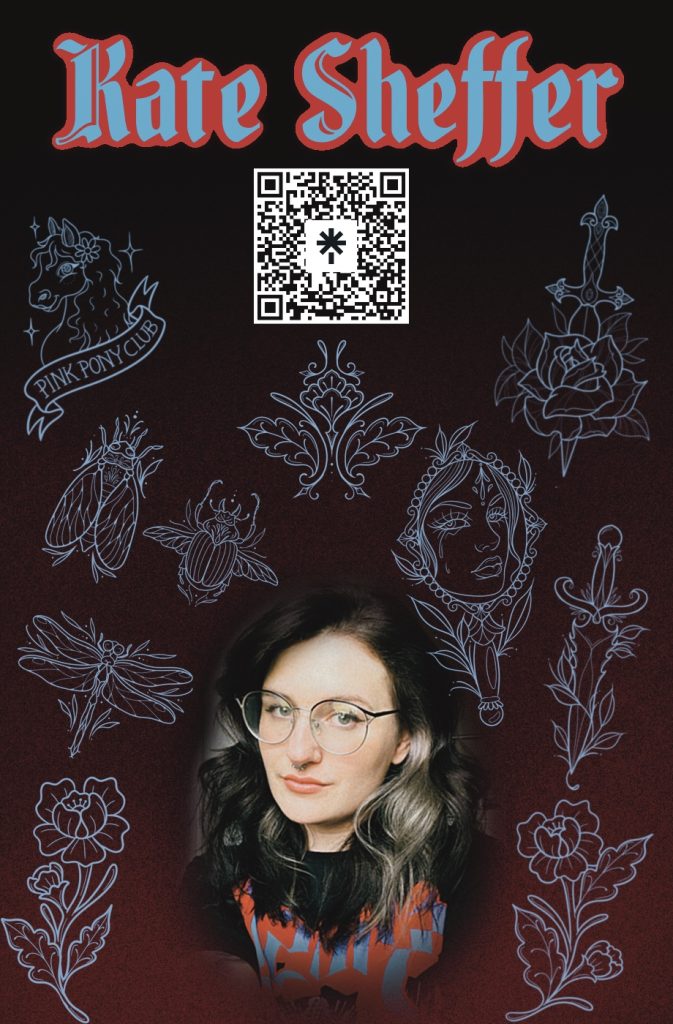 Rebecca has been tattooing for 11 years and brings creativity and precision to every piece she creates. While she loves traditional and black and grey styles, she’s fluent in a variety of tattoo styles, with her most popular work being vibrant, full-color floral designs. She loves Bigfoot, films and her two hairless Sphynx kittens.