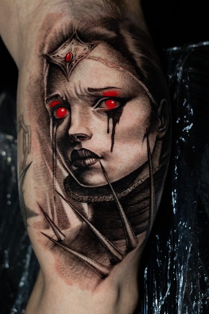 Katelyn Hawk, based out of South Western PA began her tattoo career in the late summer of 2020. Specializing in expressive illustrative pieces, some of her favorites being subjects folklore, horror, fantasy, and character portraits/pinups.
